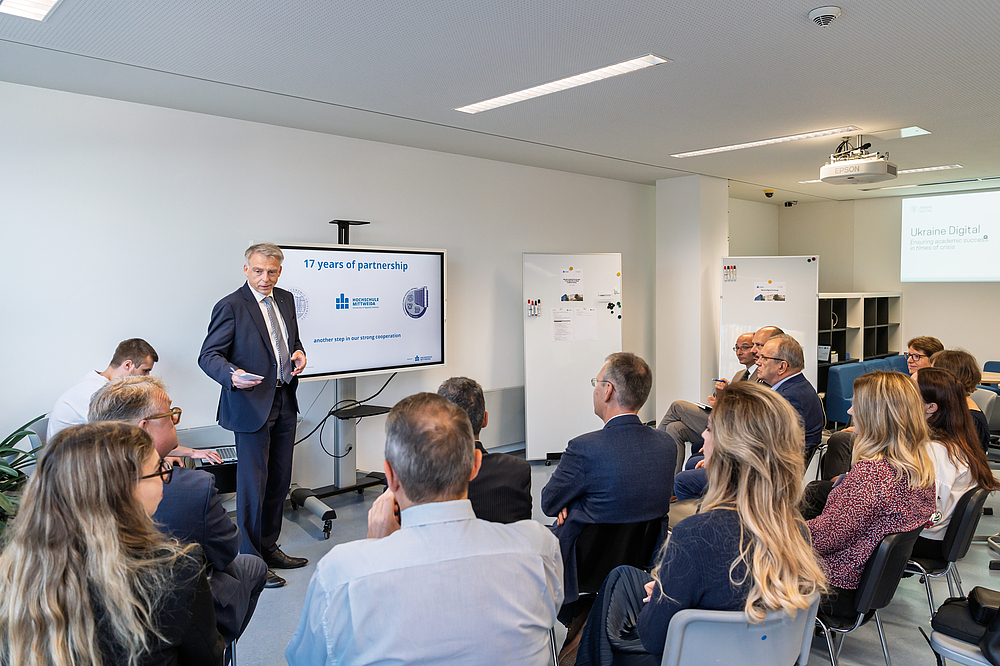 Im Rahmen des Projekts «Ukraine Digital» mit Unterstützung des DAAD fand vom 21. bis 26. Oktober die Veranstaltung «Ukraine Digital: von Ergebnissen zu neuen Kooperationen» statt. Eine achtköpfige Delegation der ukrainischen Partneruniversitäten Dnipro National University (DNU) und Odesa National Economic University (ONEU) kam nach Mittweida.