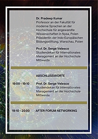 Am 8. November 2022 fand die zweite Auflage des East-West-Forum statt. Unter dem Motto "Globalisierung & Re-Globalisierung: wohin treibt die Weltwirtschaft?" bot diese Veranstaltung eine internationale Austauschplattform zwischen Universitäten sowie politischen und wirtschaftlichen Akteuren aus der Ukraine, Kasachstan, Bulgarien, Nordmazedonien, Polen, Spanien, Deutschland und den USA.